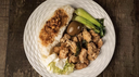 All rice dishes include an egg, Taiwanese style kimchi, and vegetables. (GF) = Gluten-Free, (V) = Vegetarian, (DF) = Dairy-Free, (CN) = Contains Nuts, (Vegan) = Vegan.