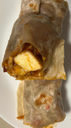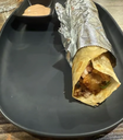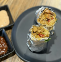 Fried vegetable balls sauteed in soy-garlic sauce, wrapped in a roti.