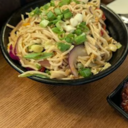 Stir-fried noodles tossed in a wok with mixed vegetables, Schezwan sauce, soy sauce, and pepper.