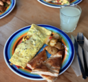 Eggs, seasonal vegetables, and cheese. Served with toast and house potatoes.