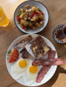 French toast, served with eggs, halal turkey bacon, and house potatoes.