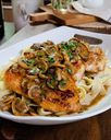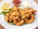 Fried or pan-seared shrimp, lettuce, tomato, pickles, and sauce with a choice of rice, steak fries, or onion rings.